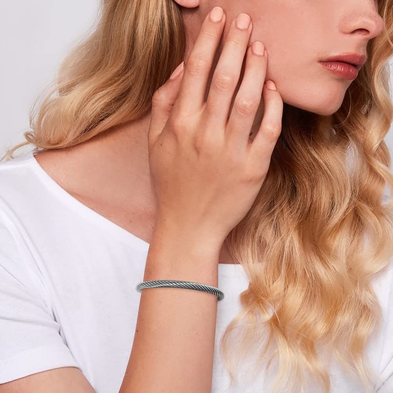 - You can wear a stainless steel cable cuff bangle for any occasion. It looks classy, stylish and easy to match with most of the clothes in your closet, let you get more compliments and be more eye-catching among the crowd.
