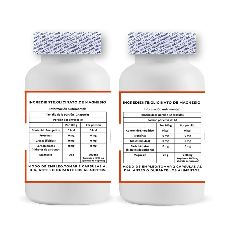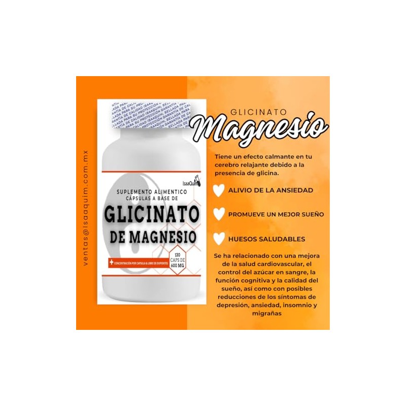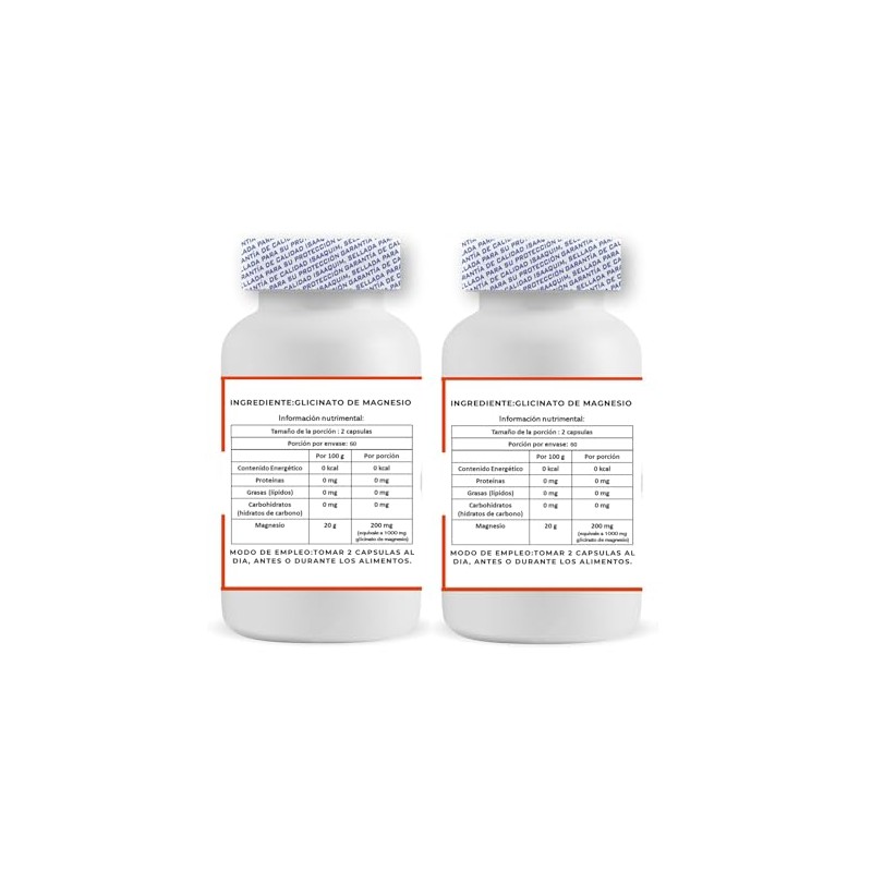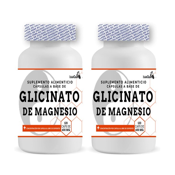 Glicinato de Magnesio 130 capsulas de 600 mg 2 frascos de capsulas
