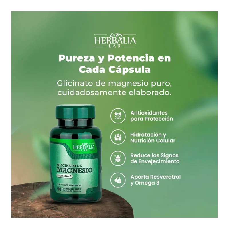 Glicinato de Magnesio 400mg Magnesio Glicinato Omega 3 Frmula Avanzada Alta Absorcin 90 Cpsulas Herbalia Lab