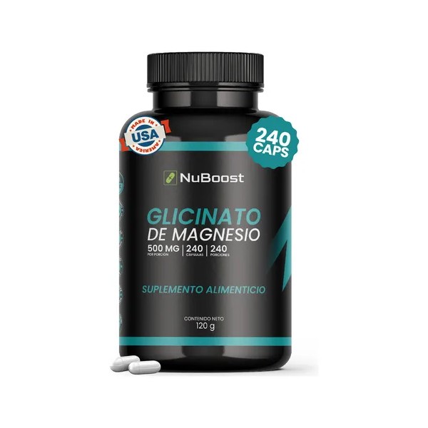 Título: Glicinato de magnesio 500mg 240 cápsulas orgánico Nuboost sabor sin sabor