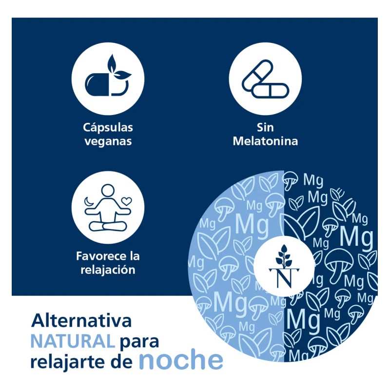 • Tomar 2 cápsulas (1 de magnesio + 1 de reishi) 30‑60 min antes de acostarse
