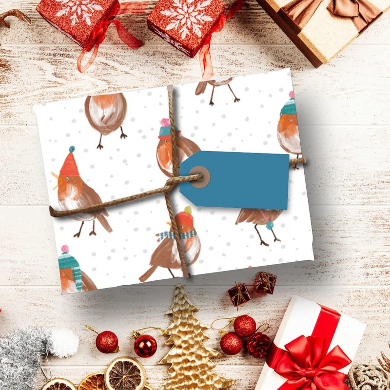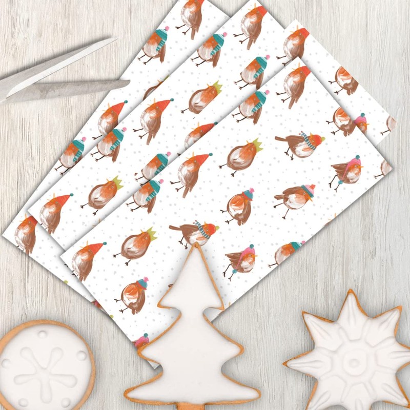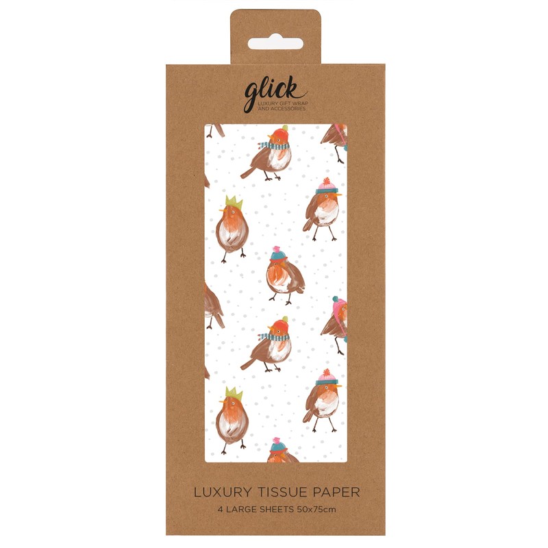 Glick Four Sheets Robin Christmas Tissue Paper, Winter Tissue for Gift Wrapping, TPX81, Multi