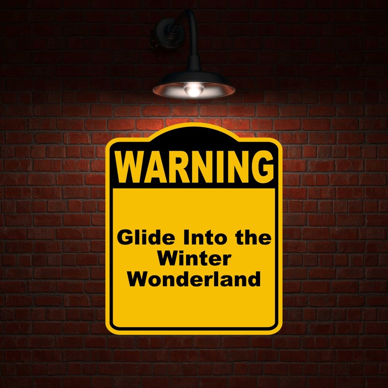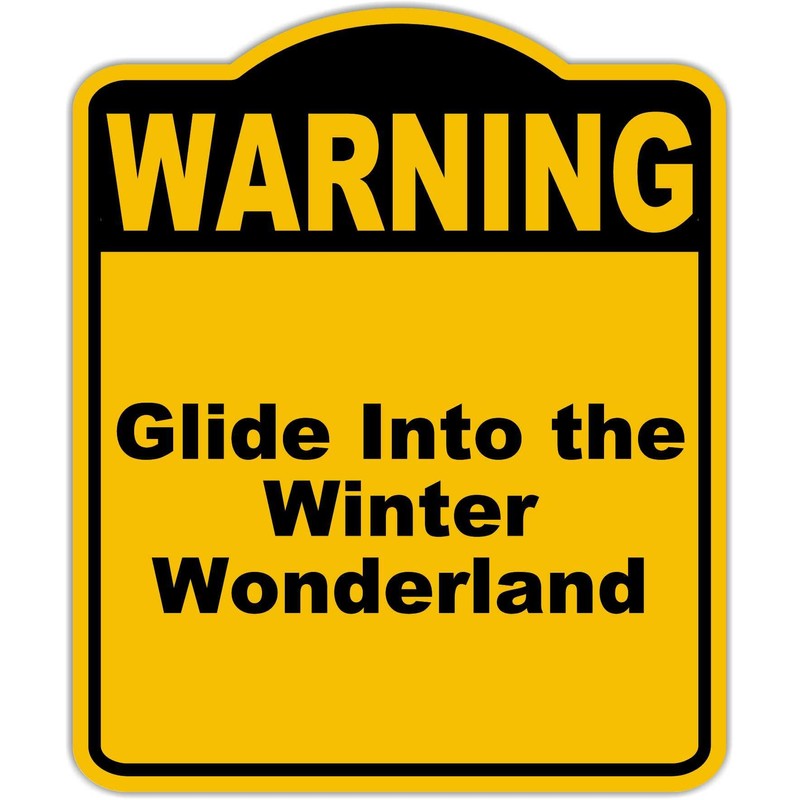 Glide Into the Winter Wonderland Warning Yellow Black Aluminum Composite Sign 8.5 x 10 inches
