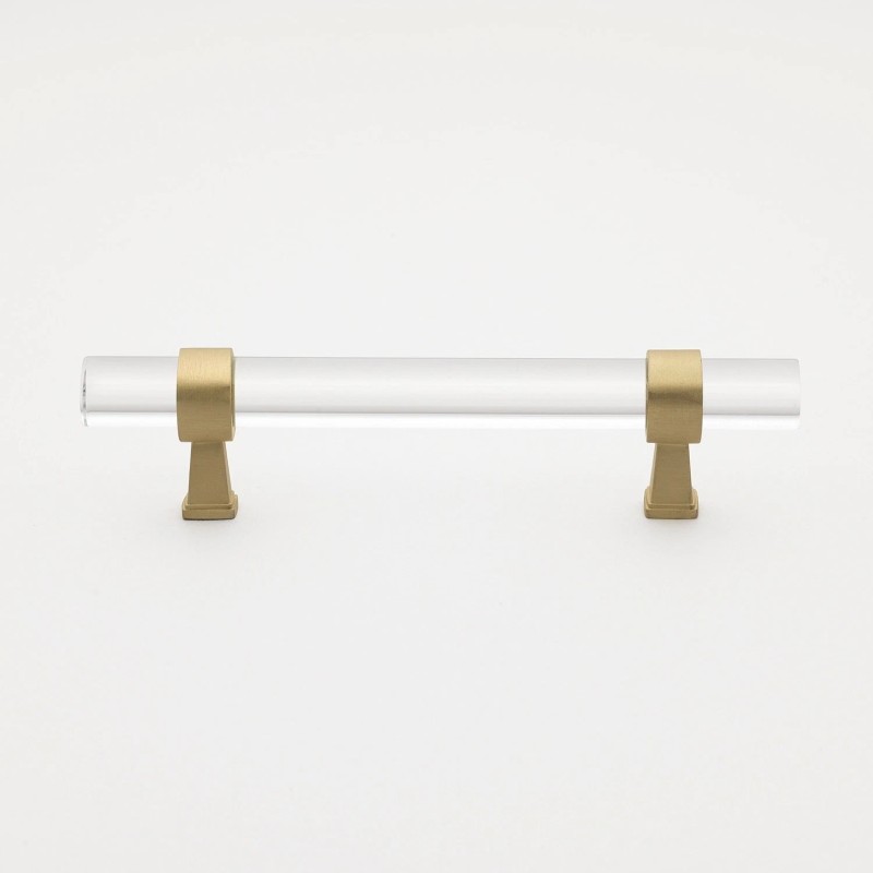 Product Description: These clear acrylic cabinet drawer pulls from GlideRite Hardware will add a unique touch to your kitchen and bathroom cabinet drawers. They will easily blend well with the rest of your décor. Each Lucite pull also features two satin gold bases. Every pull is packaged individually to prevent damage to the finish and come with necessary hardware for easy installation.