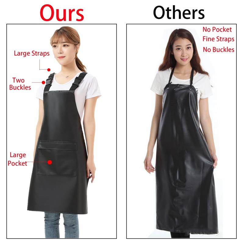 - 【Multipurpose Apron】Made of durable waterproof PU leather, these aprons are versatile and can be used to protect yourself from soiling your clothes during pet grooming, cooking, cleaning, butchers, gardening and other work. It is a perfect work apron.