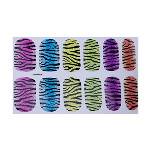 Glitter Colorful Wild Zebra Design Nail Wraps Decals Nail Art Transfer Stickers