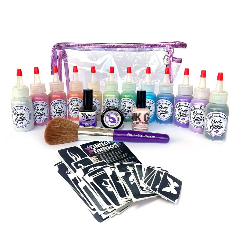 Glitter Tattoo Pro Kit With Rainbow Squeeze Bottles Set