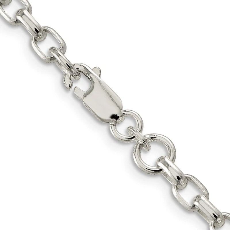 GlittersandGold Sterling Silver 4.4mm Oval Fancy Rolo Chain Necklace