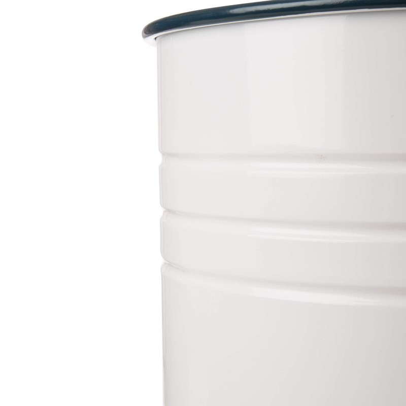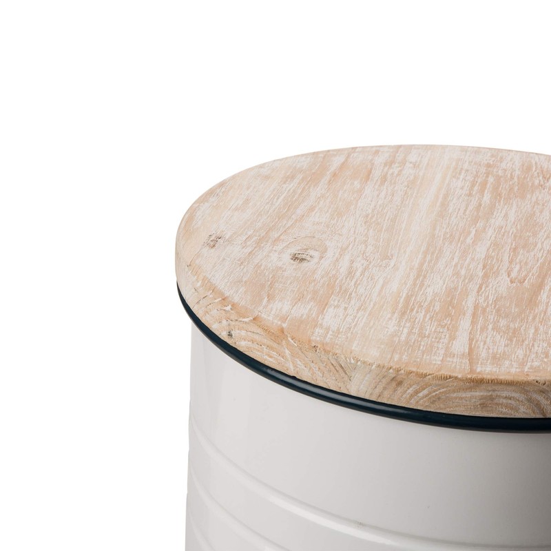 Glitzhome Rustic Storage Ottoman Seat Stool, Farmhouse End Table, Galvanized Dark Blue Rim Imitation Enamel Accent Side Table Toy Box Bin with Round Wood Lid for Living Room, Set of 2, White