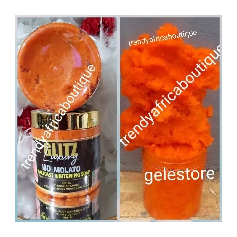 This soap can be use alone without even cream or lotion. It is our very own 100% effective 5d molato soap. Extreme whitening, triple action. Highly EXFOLIATING, WHITENING AND EVENING your skin complexion.