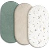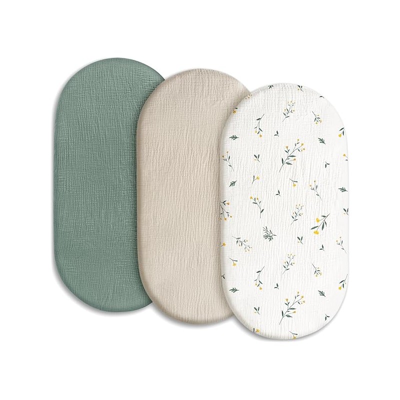 Gllquen Baby Muslin Bassinet Sheets 3 Pack, Breathable Elastic Cozy Fitted Cotton Bassinet Mattress Sheet for Baby Boy Girls, Fit for Hourglass Oval Rectangular Cradle Pad Sheets 33"X17" (Green)