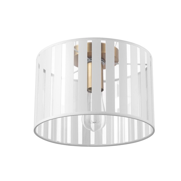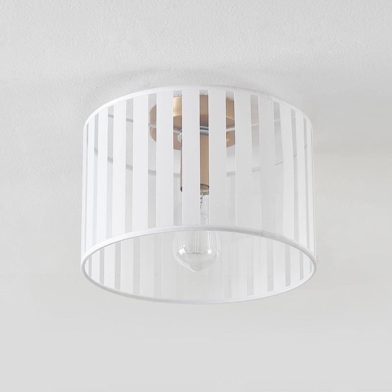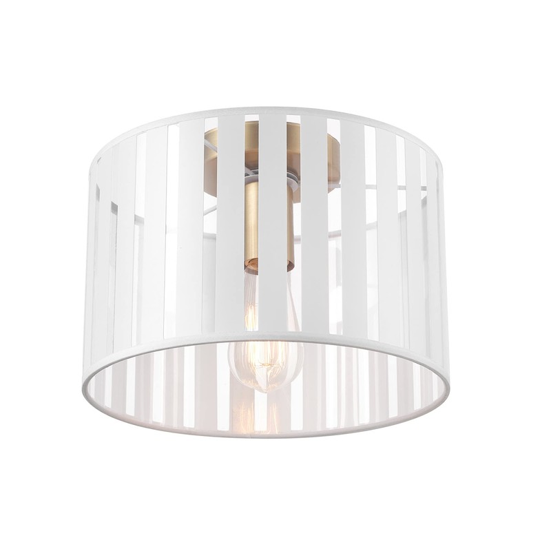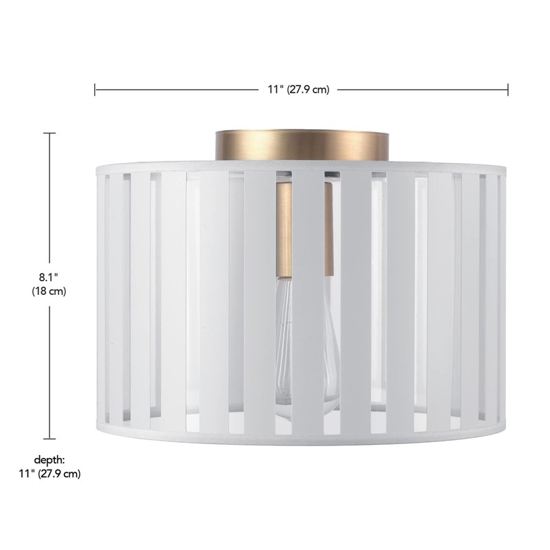 Globe 65788 Brooklyn 1-Light Flush Mount Ceiling Light, Matte Brass, Clear and White Striped Plastic Shade, Bulb Not Included