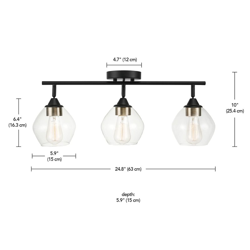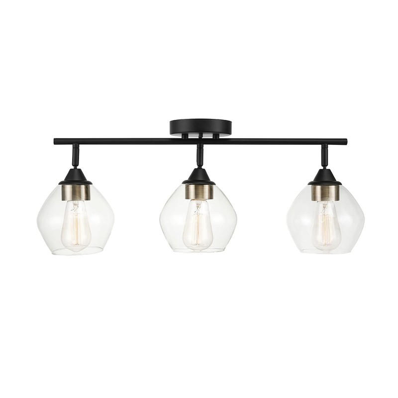 Globe Electric 59619 Harrow 3-Light Track Lighting, Matte Black, Antique Brass Accents, Clear Glass Shades, Bulbs Included, 650 Lumen