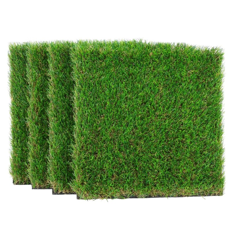 - ✔ Get 4 Packs 12"x12" artificial grass mats, 1.38" high pile of comfortable grass and 5 tones realistic looks. Decorating easter party, st Patrick’s day, indoor outdoor project, dogs potty training grass, DIY grass piece put together for balcony, kids playground.