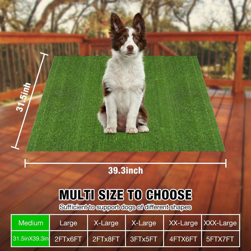 GLOBREEN Fake Grass Pee Pad for Dogs, 31.5"x39.3" Puppy Potty Training Turf, Pets Artificial Grass for Patio Balcony Outdoor, Reusable Waterproof Easy to Cut