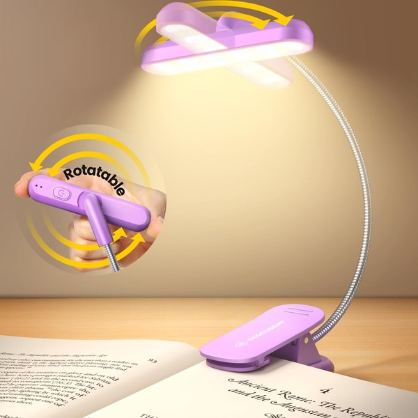 Glocusent Glocusent Drehbare Leselampe Buch Klemme, 22 LEDs Zweireihig mit Timer, Stufenlose Dimmung & Farbanpassung, 1000 mAh Wiederaufladbare Buchlampe fr bis zu 100 Stunden, Ideal fr Buchliebhaber