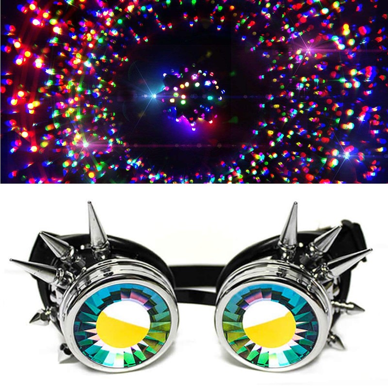 GloFX Wormhole Kaleidoscope Goggles - Festival Rave Costume Cosplay Prism EDM 3D Welding Gothic Goggles (Chrome Spike)