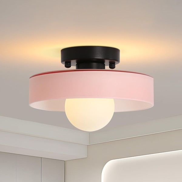 GloMuse Flush Mount Ceiling Light Bedroom Glass Light Modern Pink