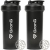 Glong Protein Shakers Black 1000ml Set of 2 Large Capacity Shaker Bottles with Shaker Ball