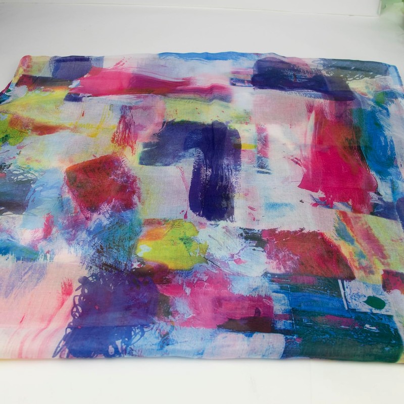 High-quality silky lightweight scarf. Size approx. 85 x 48 cm one size, can be worn 2 around the neck, which is perfect for summer outfits. Material is light and airy, comfortable to wear. 100% Viscose