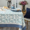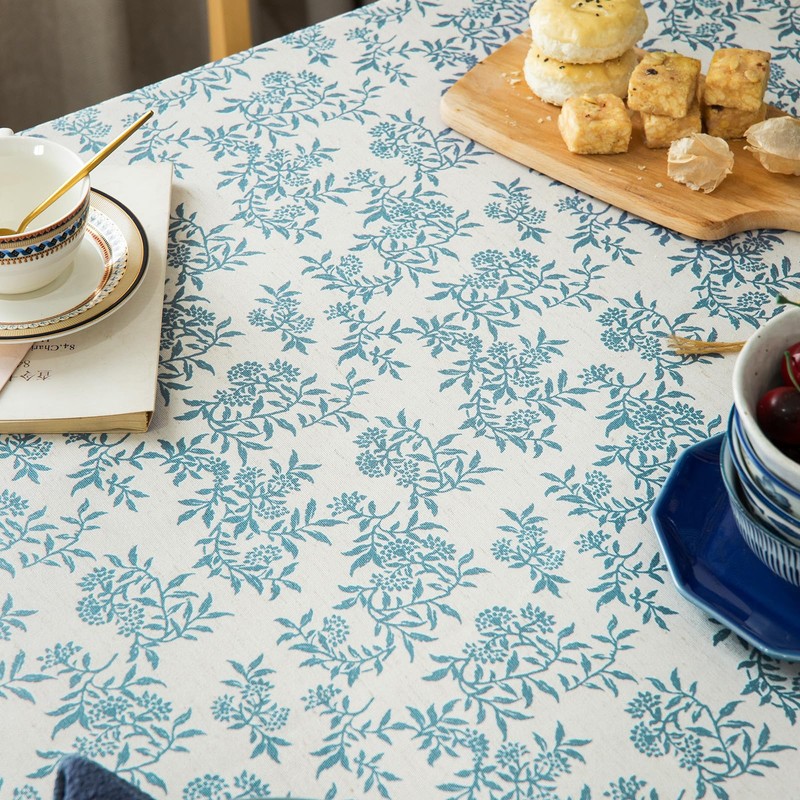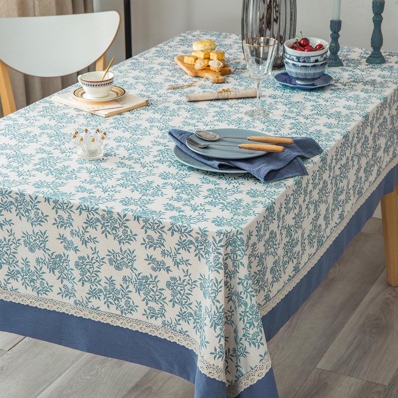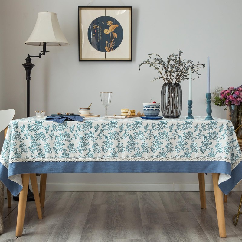 - [UNIQUE DESIGN]: Classic plant leaf priented on the linen-blend fabric,retro solid cotton fabric bordered,exclusive tablecloth design from Glory Season. The vivid leaf pattern of blue and ivory colors printed fabric design has a fresh and fashionable look that works with any style of dishware,release unique elegance and natural style,suitable for decorating your dining table top.It is good for holiday party, cocktail party, wedding, catering events, buffet, birthday parties,etc.