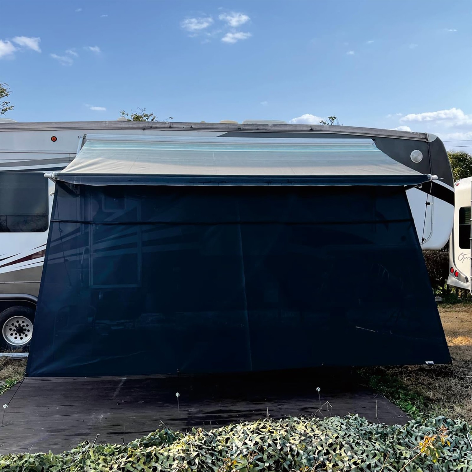 Energy-efficient cooling: By blocking direct sunlight, it decreases internal camper temperatures, reducing the need for air conditioning and saving energy.