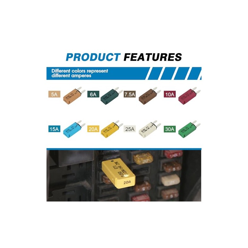 GLOSO GLOSO Circuit Breaker ATM E71 Mini 10 Amp Automatic Circuit Breakers 2.8 mm Auto Reset (T1) - 1 Pack (10A)