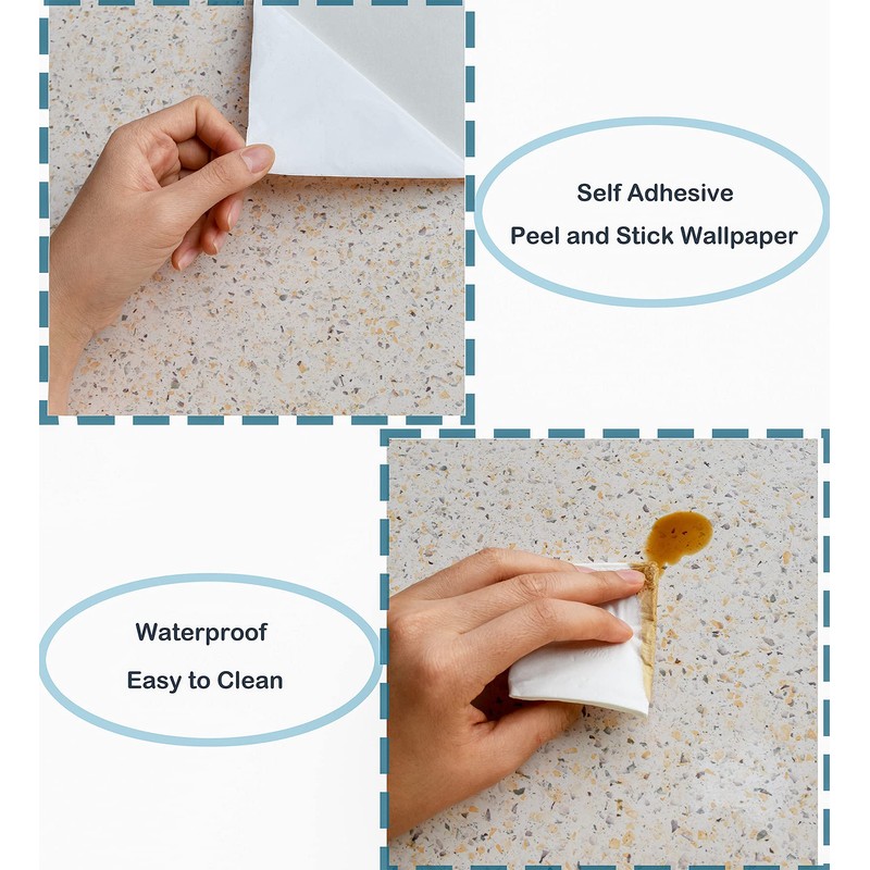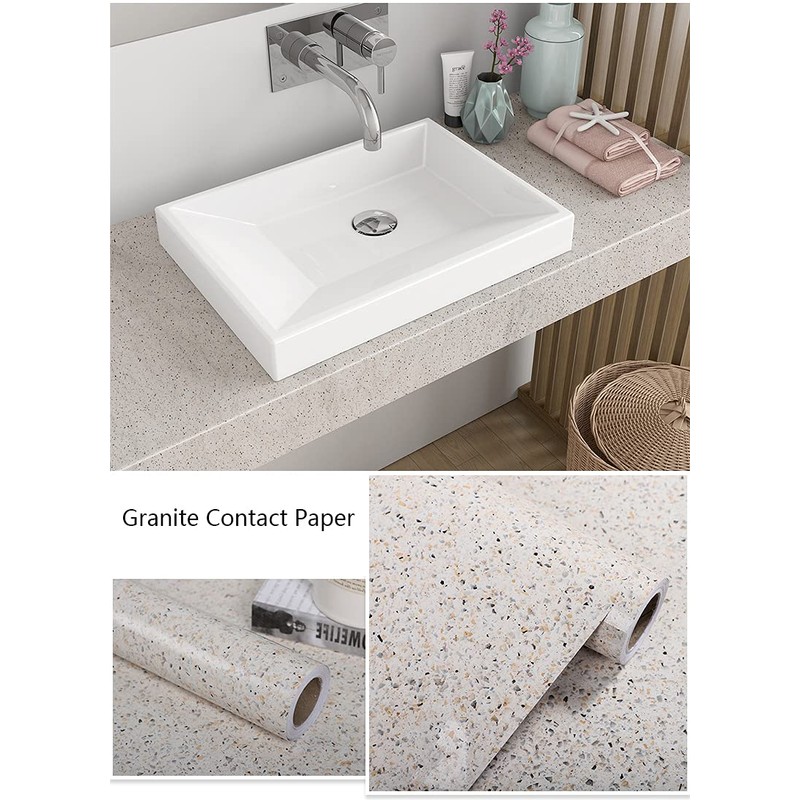 - 🪐GRANITE COUNTERTOP PAPER🪐:EASY TO INSTALL–The grid design on the back is easy to cut. Just peel and stick, granite paper is removable without sticky residue, Terrazzo effect makes you not worry about stitching.