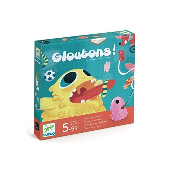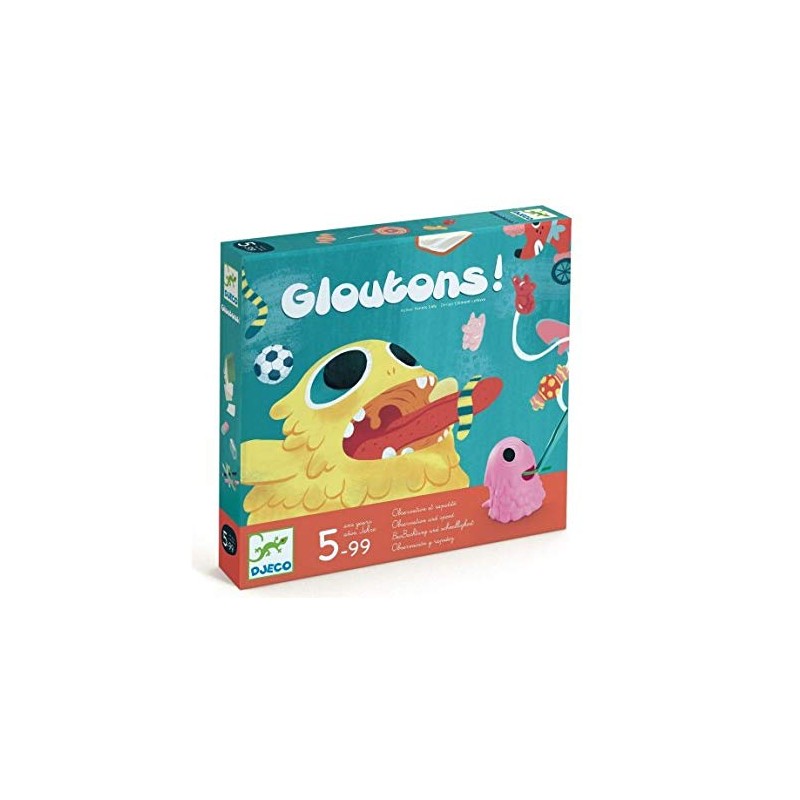 - In Gloutons, each player has a hungry monster and tweezers to retrieve food. Strings are placed in the middle of the table and a player turns over a card. Players must simultaneously pick up the objects indicated on the card with their tweezers and maneuverer them into their monster’s mouth. As soon as a player thinks they are finished, they yell out “Glutton” and the game stops. If no error has been made, the player wins the card and places it in front of them.