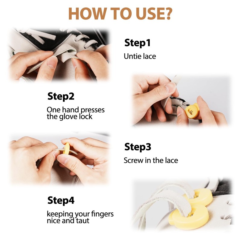- Never Retie Knots Again – Secure Locking for Baseball/Softball Gloves: Keep your glove laces perfectly taut with these glove lace locks! The spring-lock technology ensures a tight grip even during high-speed catches, eliminating constant retying. Adjust effortlessly as the leather stretches.