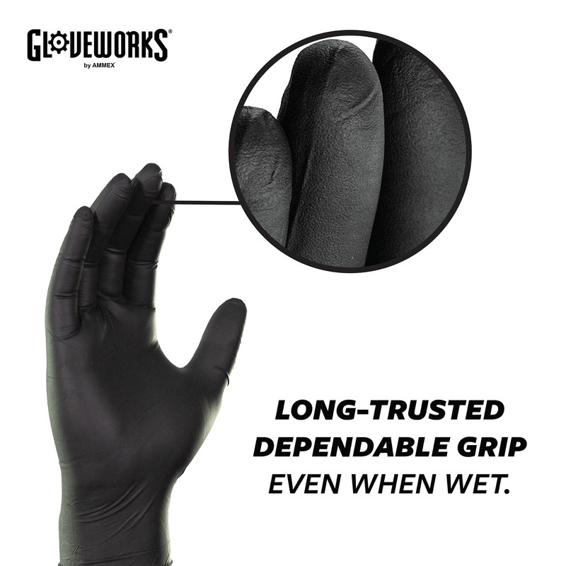 GLOVEWORKS Black Disposable Nitrile Industrial Gloves, 5 Mil, Latex & Powder-Free, Food-Safe, Textured, X-Large, 2 Boxes of 100