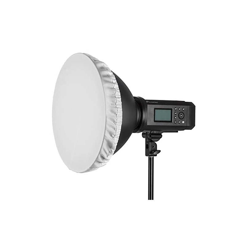 Transform the harsh output of a metal reflector with this simple and effective diffuser, without losing a significant amount of efficiency. Attach elastic edged GLOW 18" DIFFUSER SOCK to your Glow silver or white reflector or beauty dish, to create a softer and more even light. The light modifier converts the direct light into a softer, slightly less powerful beam, taking the sharp edge off of shadows. The diffuser expands the utility and coverage of the reflector, while taming the spread of the light, just enough, for large groups to be lit uniformly.