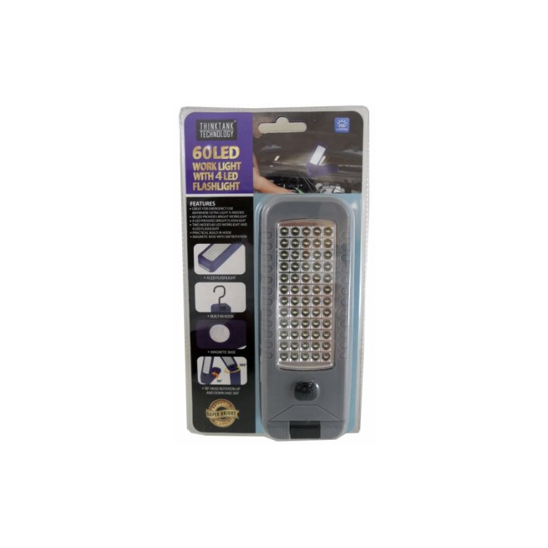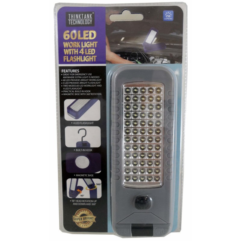 - DUAL FUNCTION: Equipped with 60 ultra-bright LEDs for worklight and 4 LEDs for flashlight use.