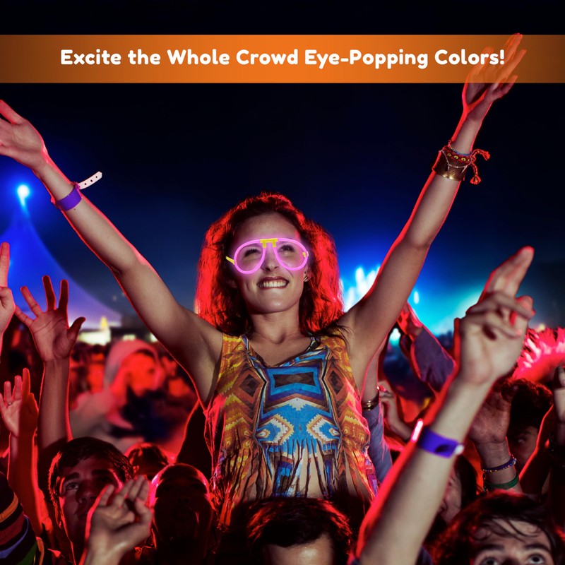 - Shine Brighter in the Dark: Never lose your glow sticks party pack in low light again! Our party glasses bring excitement and engagement to dim environments — perfect glowsticks for party bulk use or light sticks for glowing decorations.