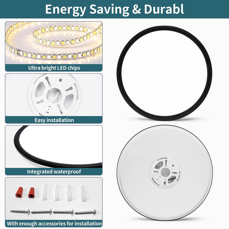 • Natural and Eye-caring: Glowall round ceiling light fixtures adopt high quality LED chips provide a large amount of uniform light without flickering or humming noises, protects your eyes from harsh and glaring lights. With a high color rendering index of 90+, which can make the light closer to the real and original color of the object. Provide you with an extraordinary comfortable bright experience