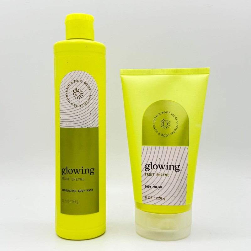 - Glowing Fruit Enzyme 2-Piece Bath & Body Bundle | Includes: 11.3oz Exfoliating Body Wash and 8oz Body Polish.