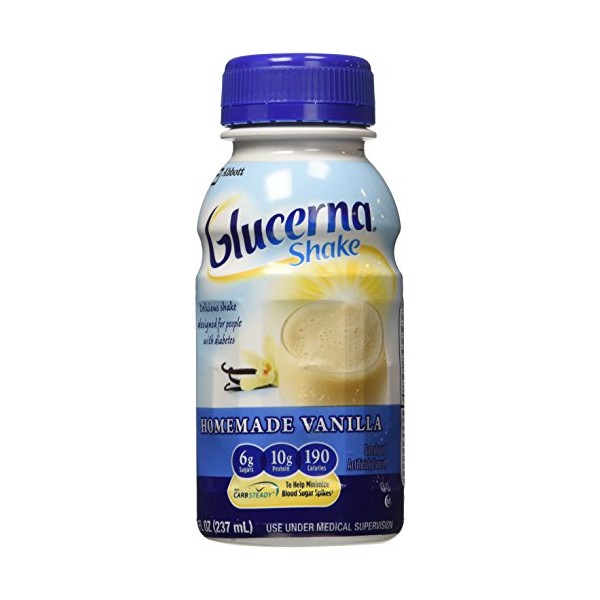 Glucerna licuado de vainilla hecho en casa de 24 a 8 onzas líquidas, 192 onzas líquidas. Delicioso licuado diseñado para personas con diabetes. Tiene azúcar de 6 g de carbohidratos, 10 g de proteína, 190 calorías para ayudar a minimizar los picos de azúcar en la sangre.