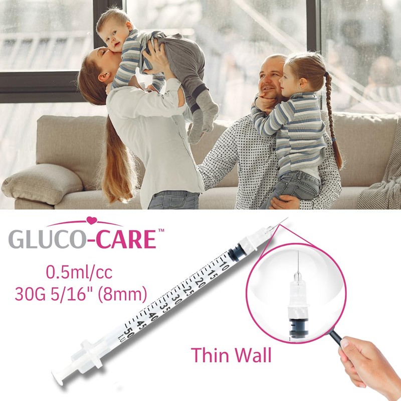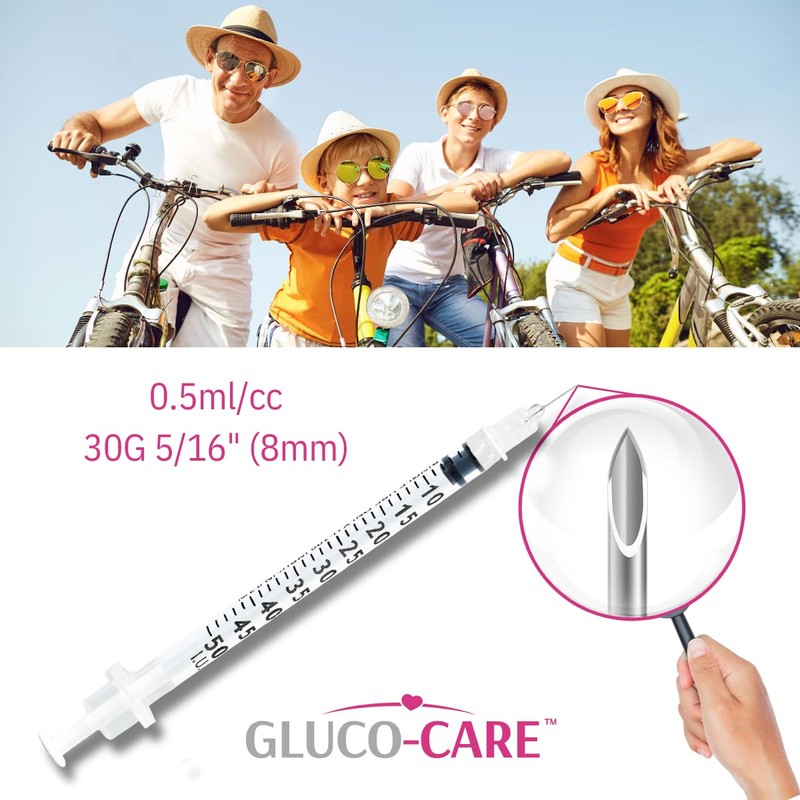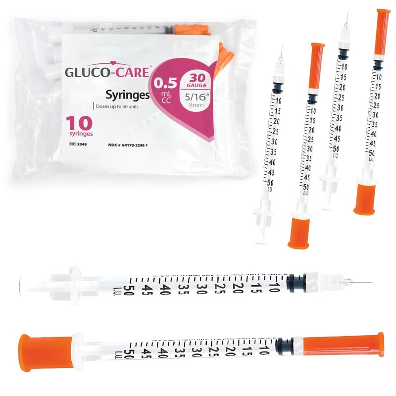 GLUCO-CARE 0.5 ml/cc Syringes 30G x 5/16’’ (8mm), Orange Cap, 10/bag