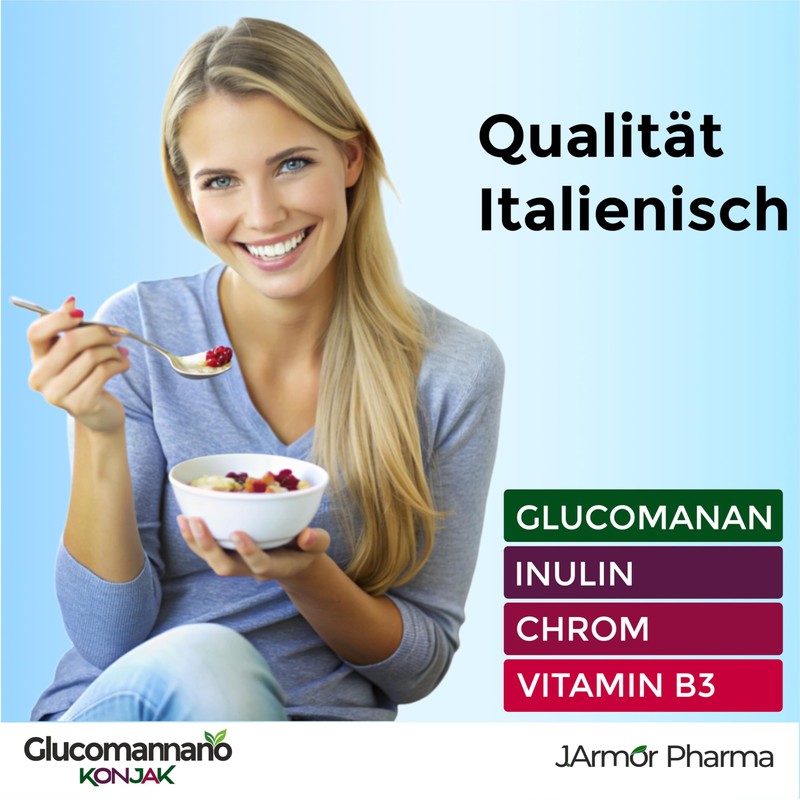 - Excellent value for money: high-dose glucomannan from konjac root. A daily dose (6 vegan capsules) contains 4000 mg of glucomannan extract from natural konjac root, enriched with the prebiotic inulin, chromium and vitamin B3