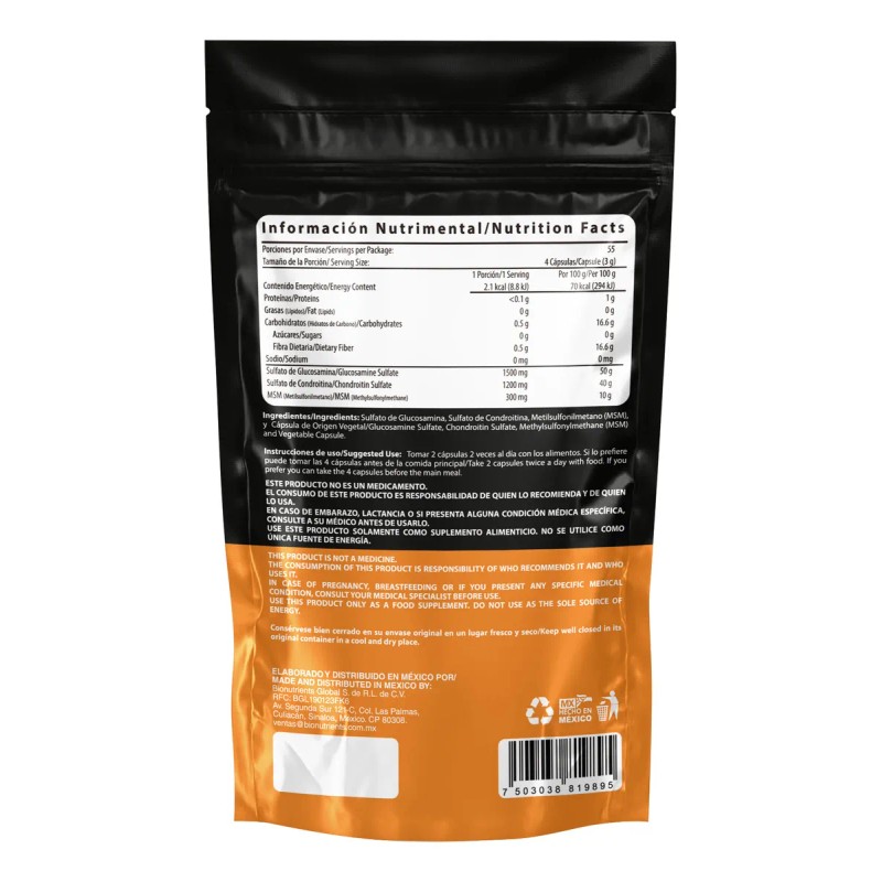 Glucosamina + Condroitina + Msm. 220 Cápsulas Bottle Free Sabor Sin Sabor