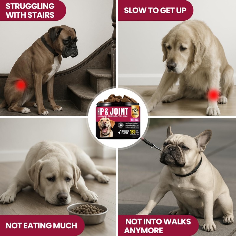 Formulated with glucosamine, turmeric, and omega-3, our dog joint chews work synergistically to reduce inflammation, improve joint flexibility, and promote overall joint health. Perfect for dogs suffering from joint stiffness, arthritis, or general mobility issues.
