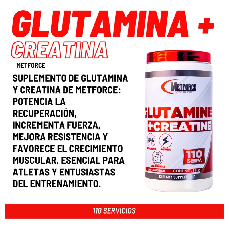 Glutamina + Creatina Monohidratada Metforce 110servs 550grs