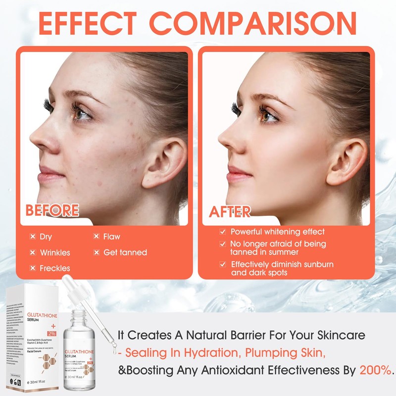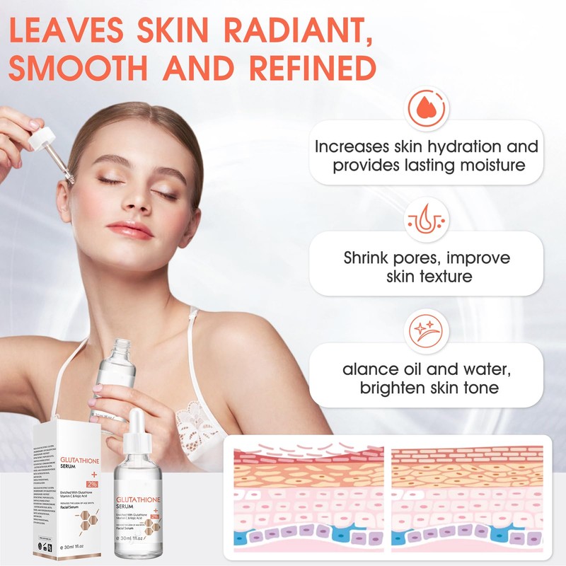 Glutathion verbessert den Hautstoffwechsel, spendet der Haut tiefenwirksam Feuchtigkeit, verleiht ihr einen matten Effekt und steigert die Kollagenproduktion. Bei langfristiger Anwendung verbessert sich der Hautzustand deutlich.