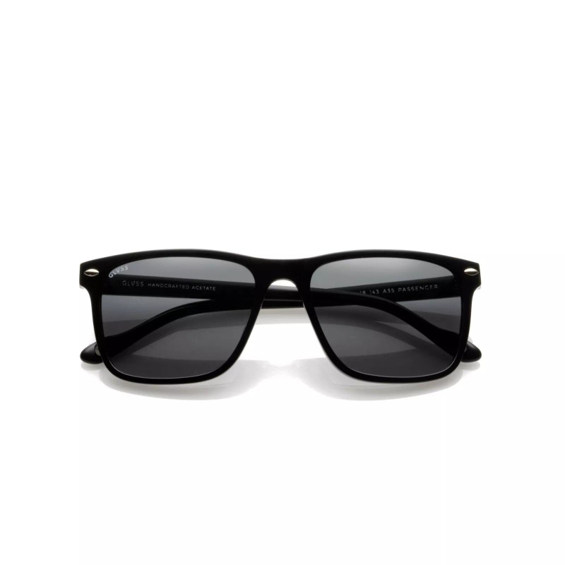 GLVSS Eyewear Passenger Rectangle Sunglasses Gloss Black Frame Smoke Tint Lens