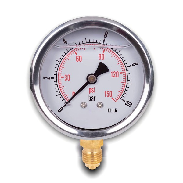 Glycerine Pressure Gauge with Radial Connection, IP65 Stainless Steel 63 mm with Lower Connection, 1/4 Glycerine (0-10 bar)