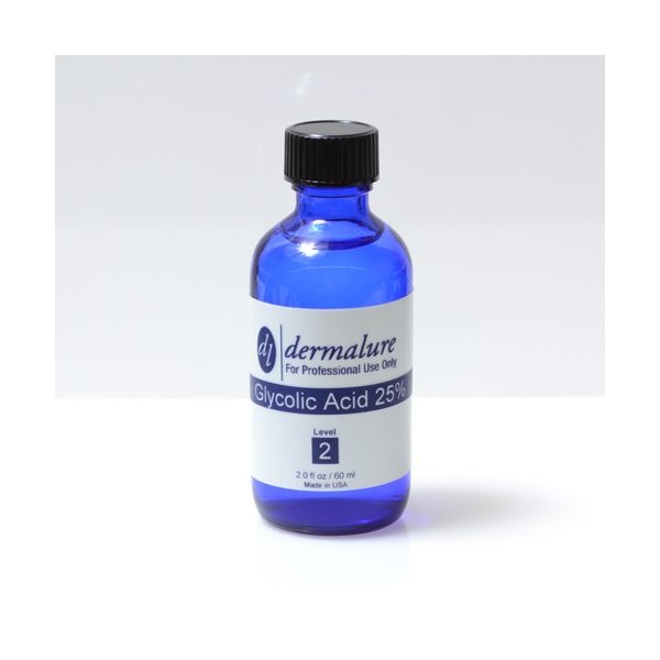 Dermalure Glycolic Acid Peel 25% 1oz. 30ml (Level 2 pH 1.5) - Exfoliating, Even Toning Face Peel for Dry Skin, Uneven Skin Tone, Aging