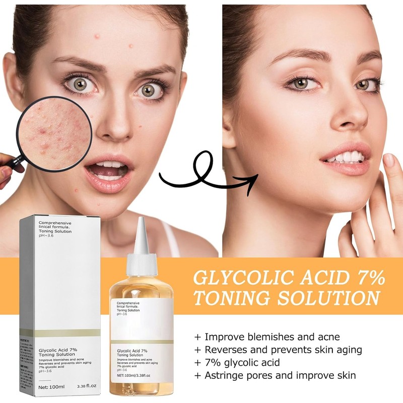 Glycolic Acid Toner 7% – Exfoliating Solution for Acne, Blemishes & Pores | S...
