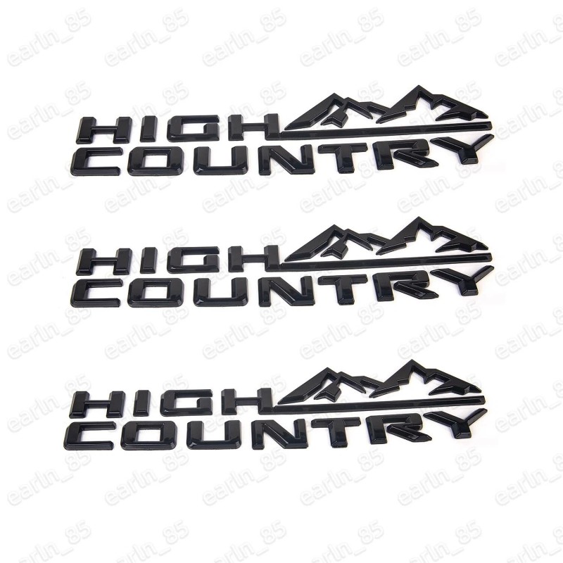 GM 3pcs High Country Emblem Fender Door Tailgate Badge For Silverado Gloss Black