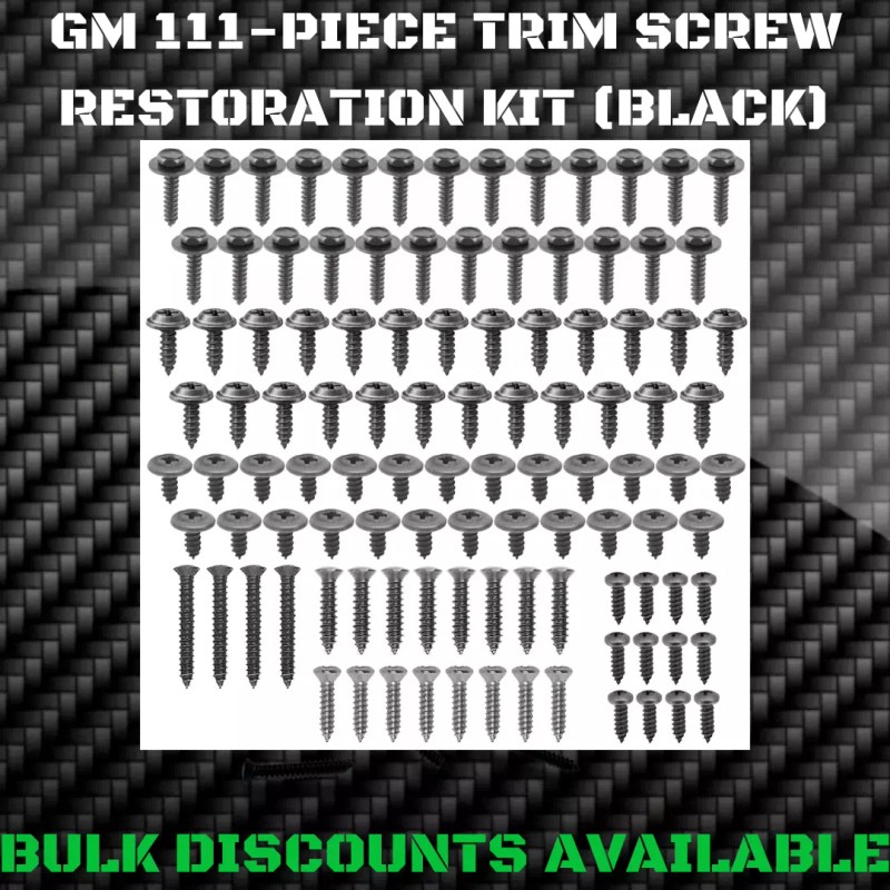 New factory GM replacement 111-piece BULK screw kit. This kit will save you over 75% versus purchasing our individual screw kits.