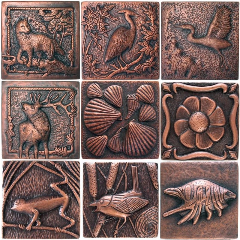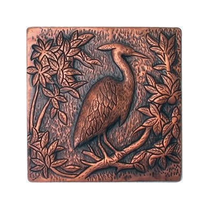 GME COPPER 4" x 4" x 3/8" DECORATIVE WALL TILE (9 DESIGNS) - Heron (082)